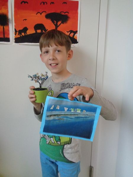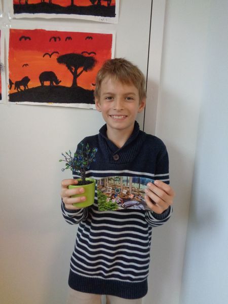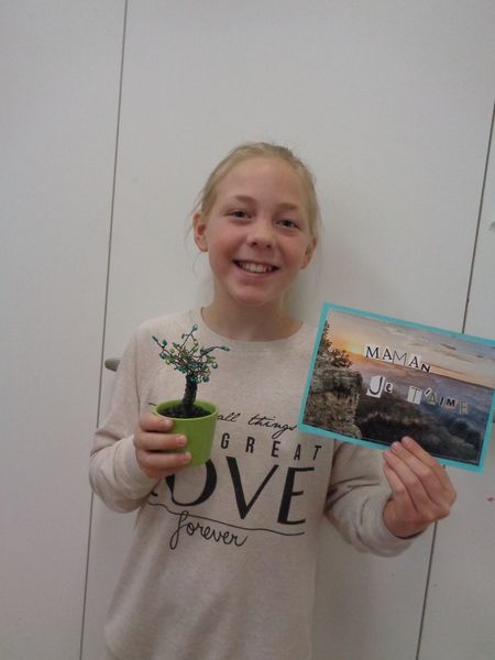 Nous leur avons fabriqué un arbre en perles ainsi qu'une carte personnalisée.
