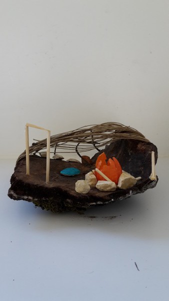 Nous avons cherché différents objets et matériaux pour construire nos habitations. Chaque chose utilisée représente un matériau présent au Paléolithique.