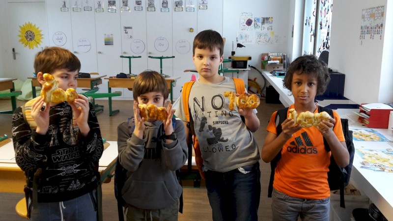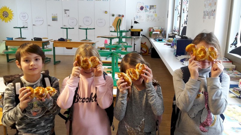 L'après-midi, nous avons partagé nos pâtes et avons façonné nos pains en forme de 100.