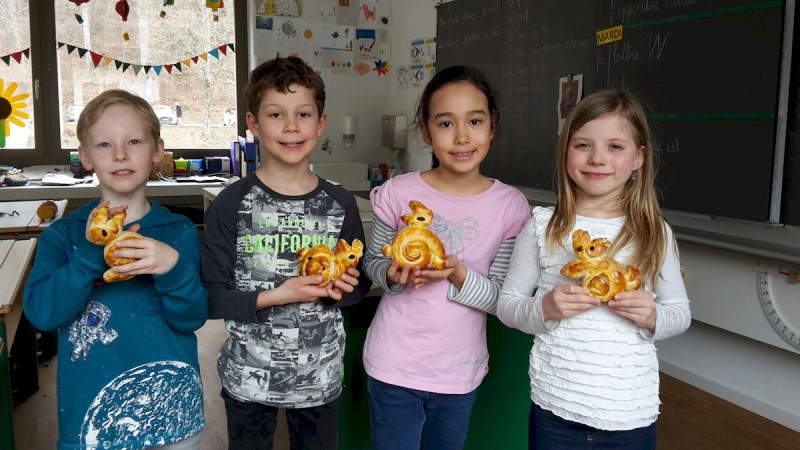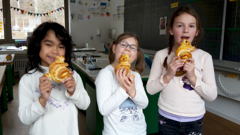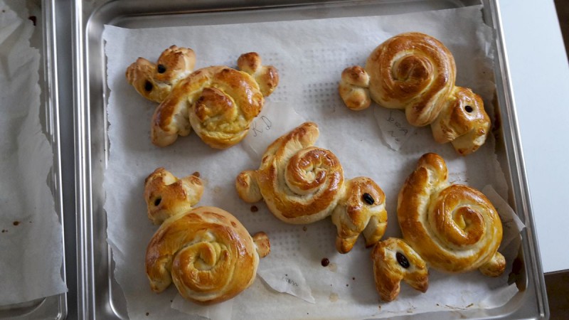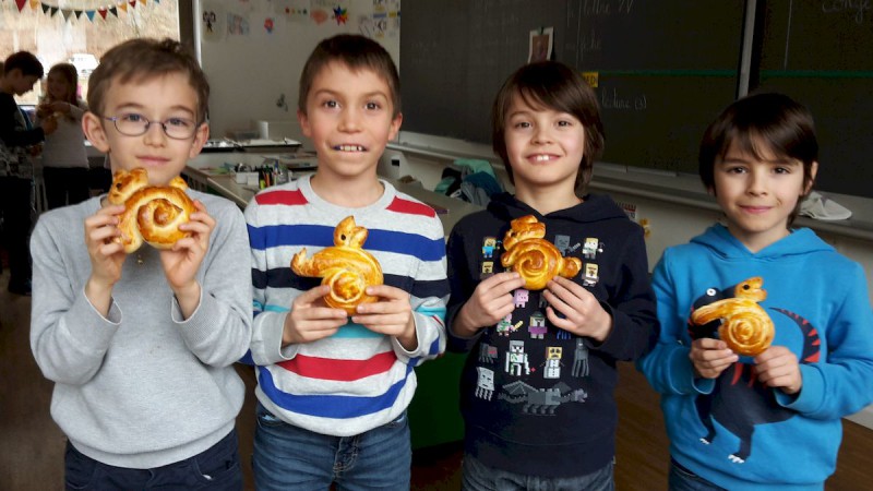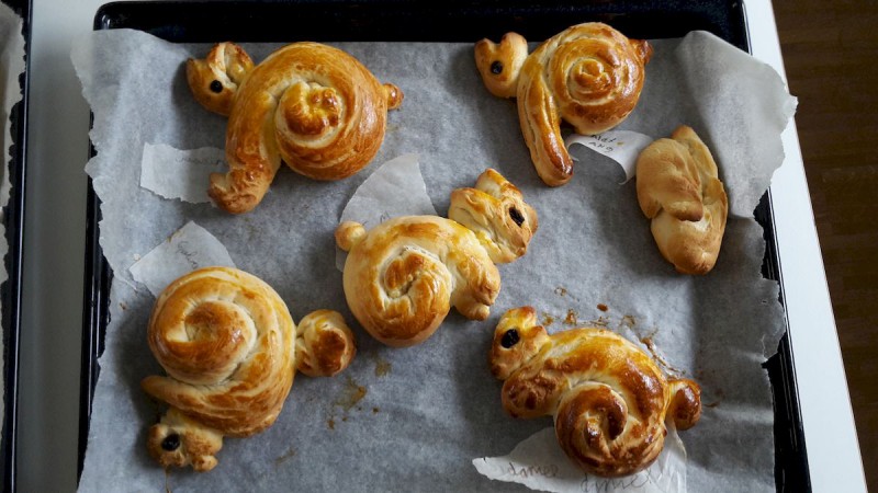 Nous avons dû peser, mélanger, pétrir, être patients, façonner, badigeonner et être à nouveau patients avant de pouvoir déguster nos lapins.