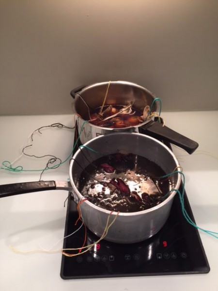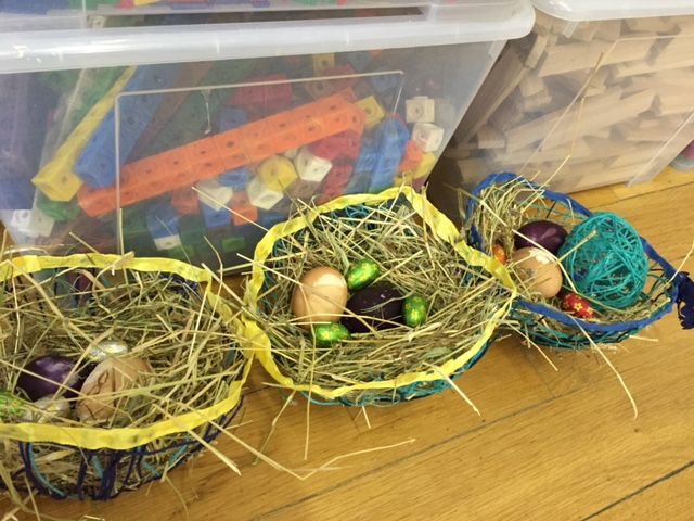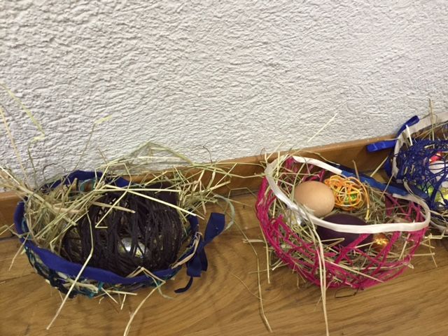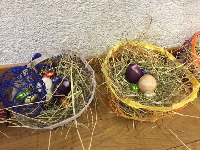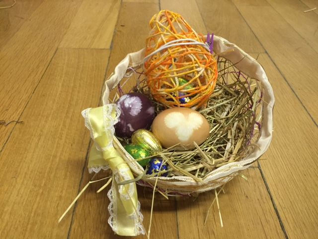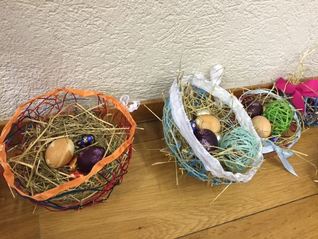 Pour garnir nos paniers, nous avons peint des œufs avec des colorants naturels.