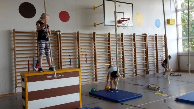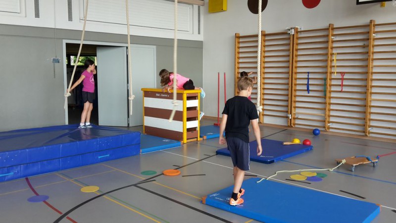 Pour notre dernière leçon de gym, nous avons pu sortir tout le matériel.
