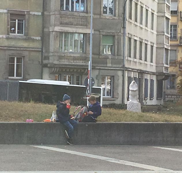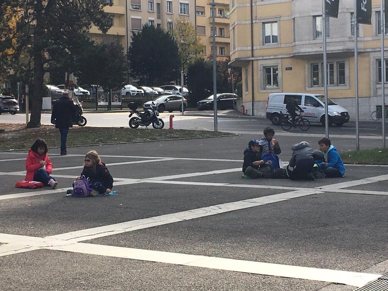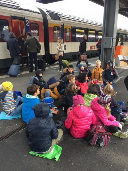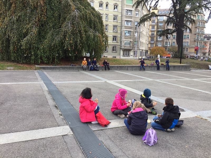 Nous nous sommes déplacés ensemble, puis nous nous sommes séparés pour visiter le musée d'histoire naturelle et la RTS. A midi nous avons dîner ensemble devant le musée et avons inversé les visites. A la fin de la journée nous nous sommes retrouvés à la gare de Genève.