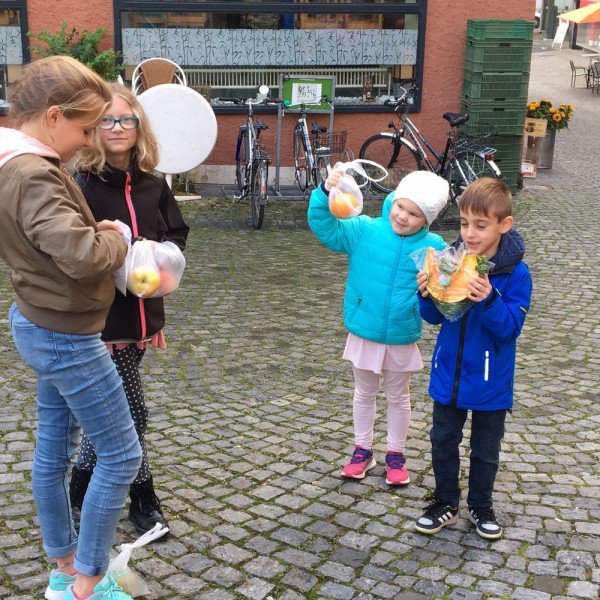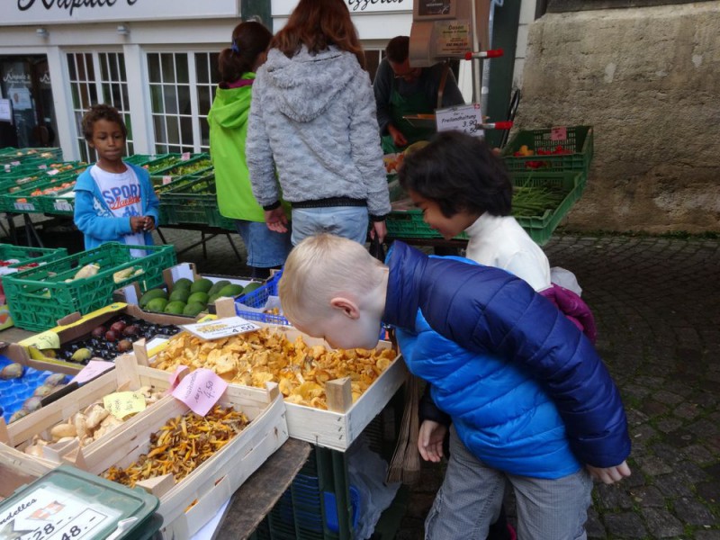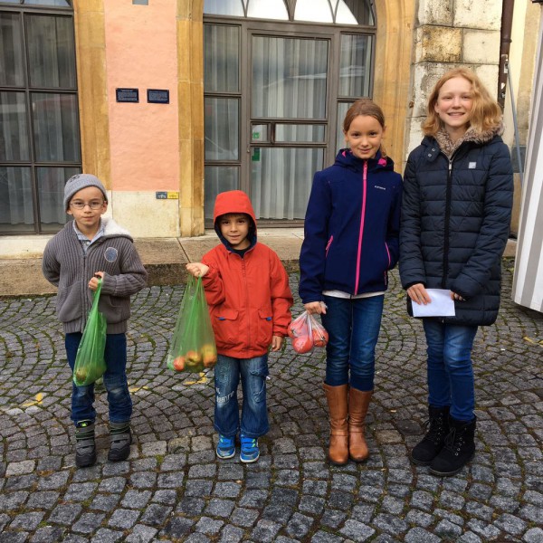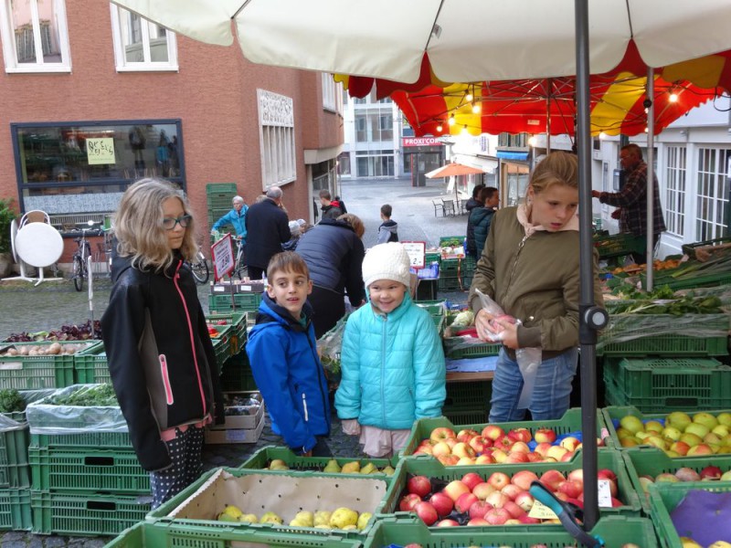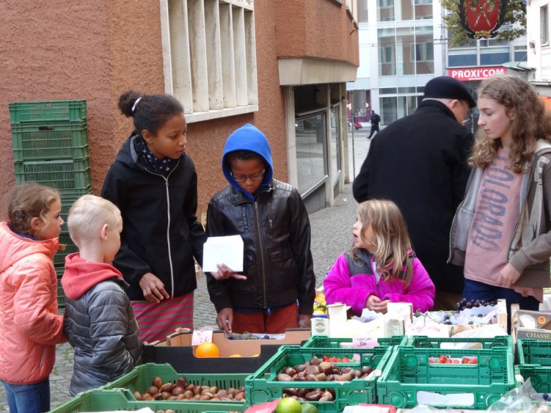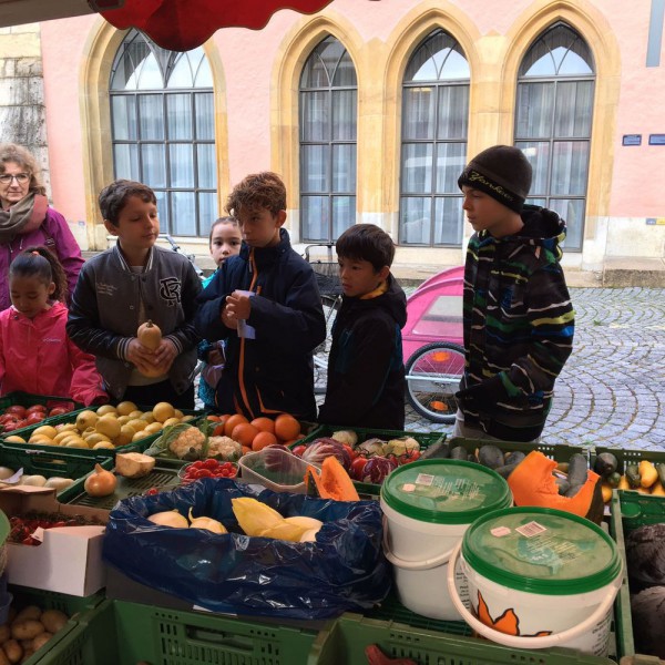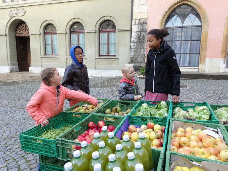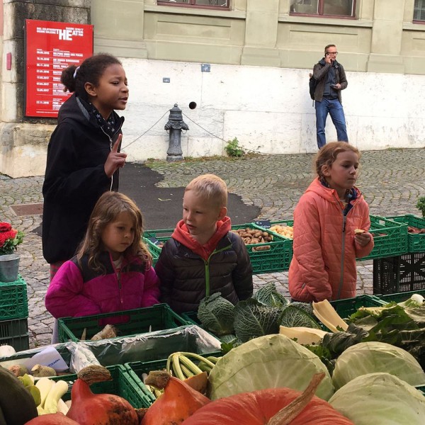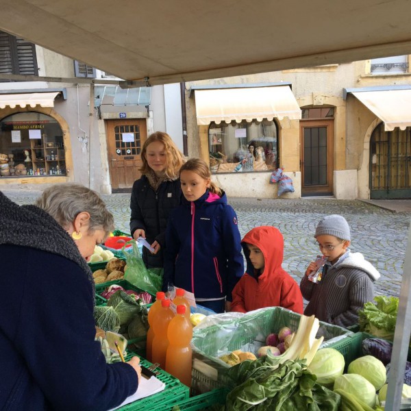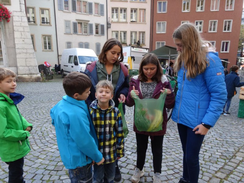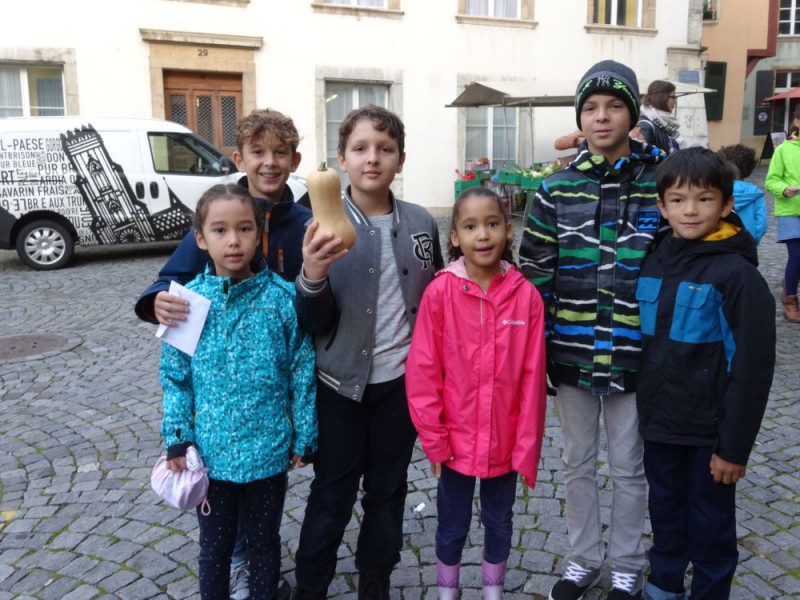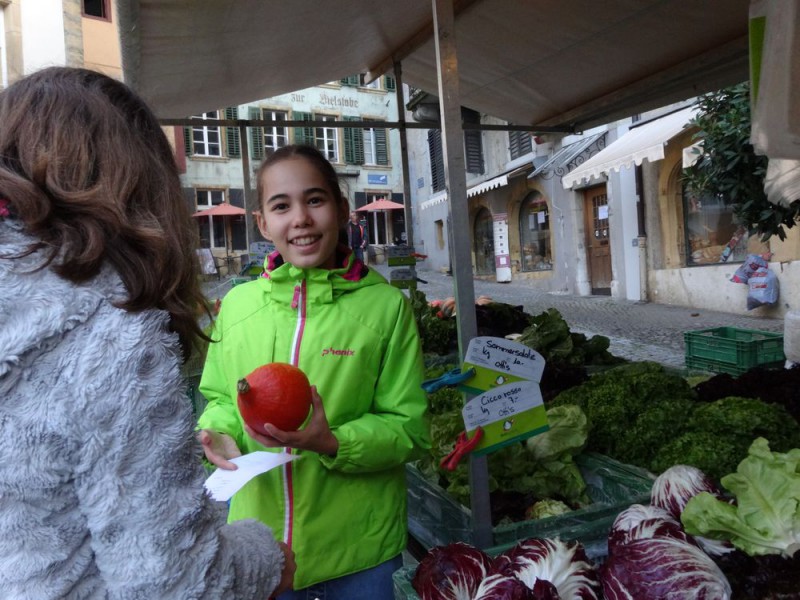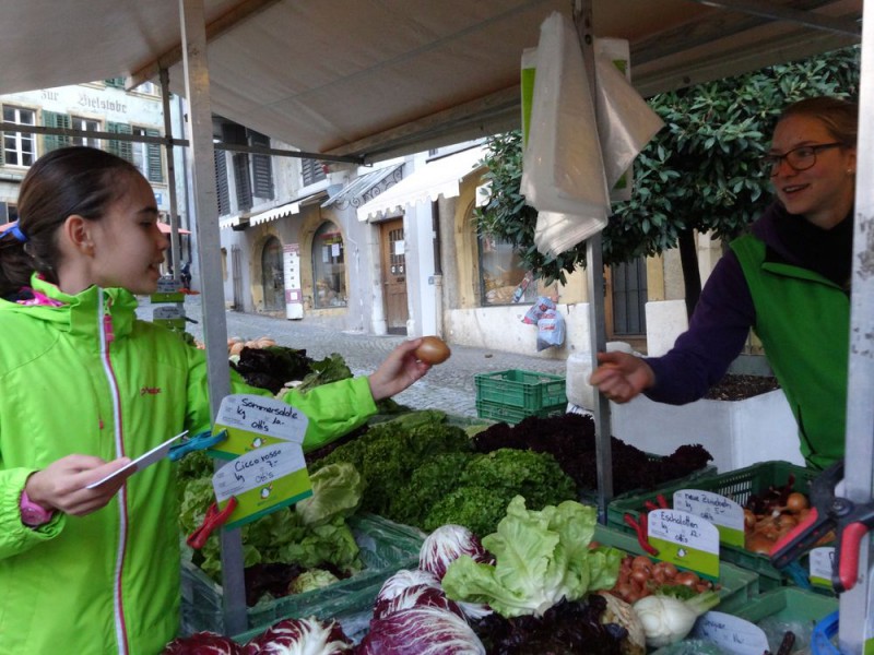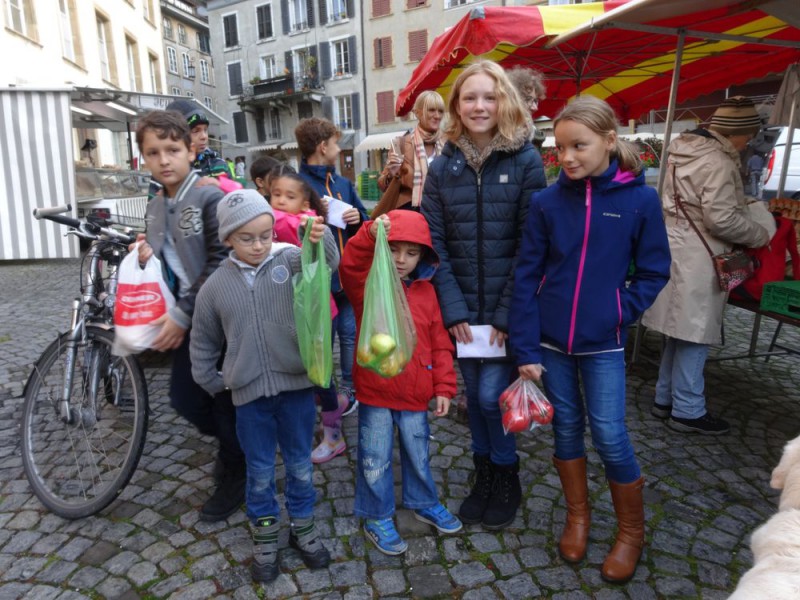 Ensuite, un petit tour au marché de la vieille ville de Bienne nous a permis d'acheter des produits frais, de la région et de rencontrer les maraîchers. Réfléchir aux quantités, calculer les prix, négocier parfois, pas facile non plus !