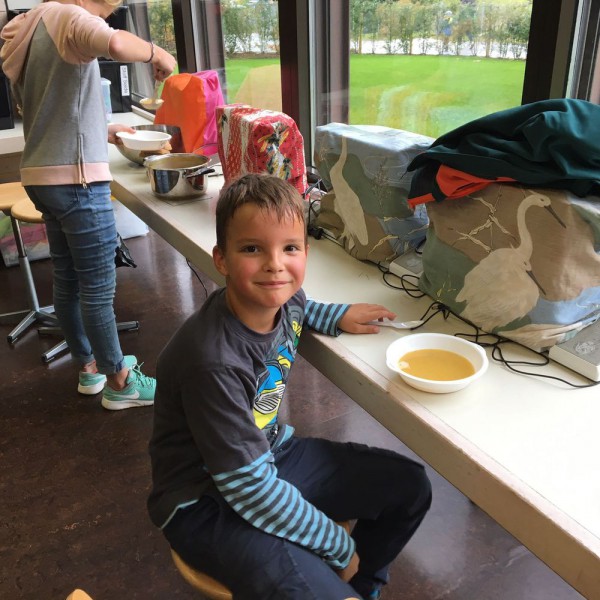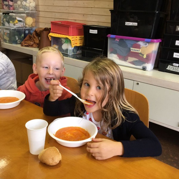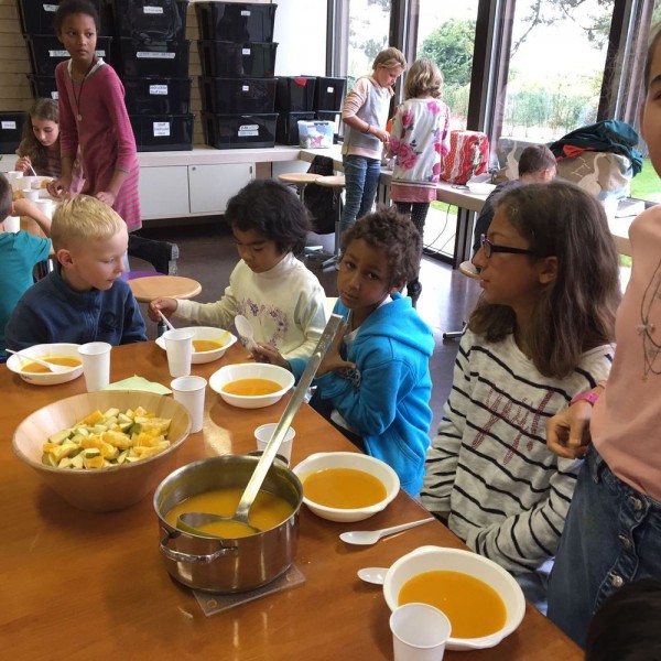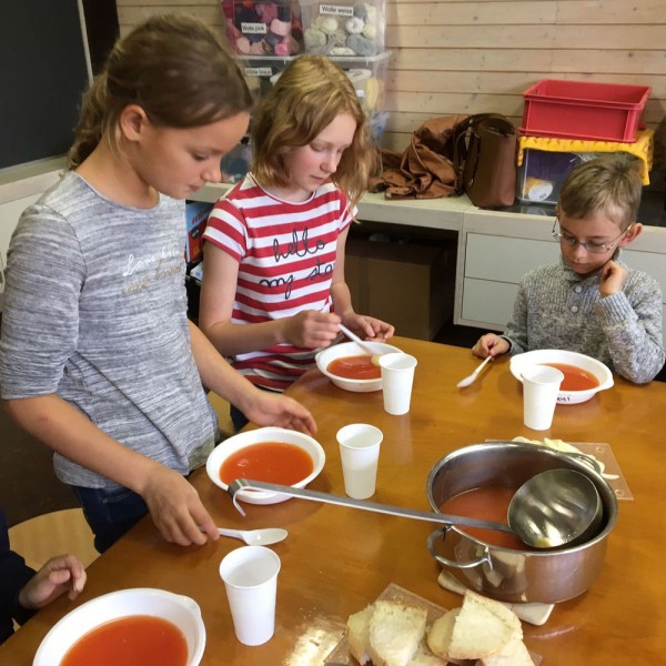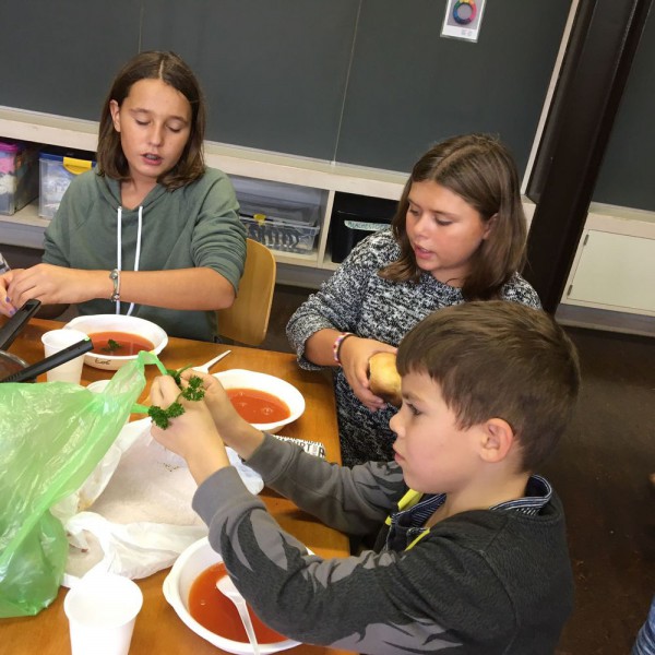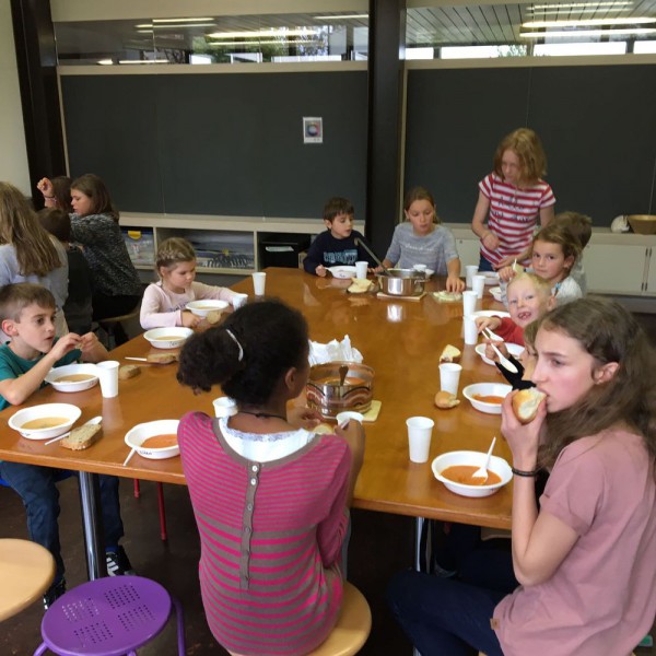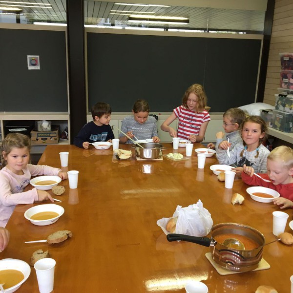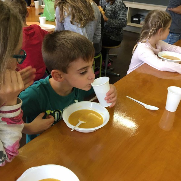 De retour en classe, nous avons coupé, cuit, goûté, assaisonné et enfin dégusté nos soupes.... un vrai régal ! Toutes différentes, mais toutes très bonnes. Nous sommes contents de nous et disons un grand merci à nos parrains-marraines !