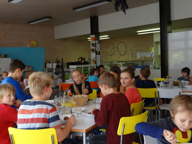 Les repas sont préparés et livrés par l’Office fédéral du sport à Macolin. Ils sont équilibrés, variés et sains. A midi, les enfants mangent en compagnie du personnel d’encadrement. Les enfants ressentent bien leurs signaux de faim et de satiété et se servent eux-mêmes. Ils décident ce qu’ils aiment ou n’aiment pas.