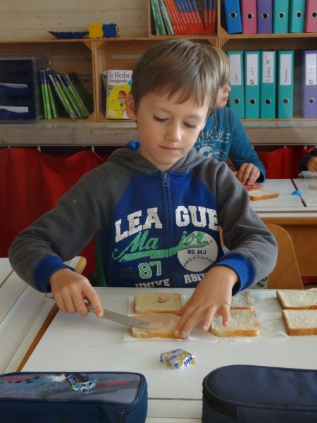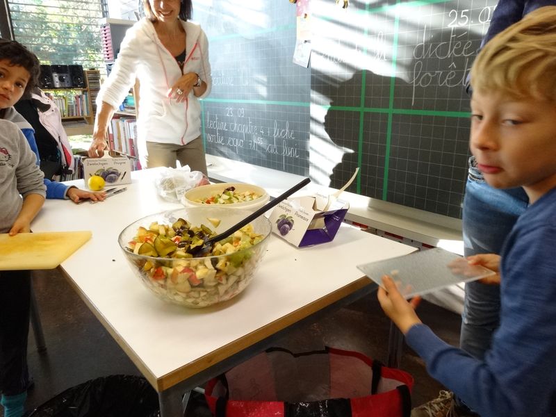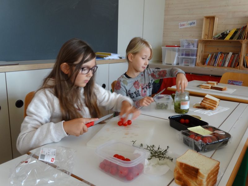 Chaque classe a débuté sa journée en préparant de quoi régaler tous les romands (100 élèves).