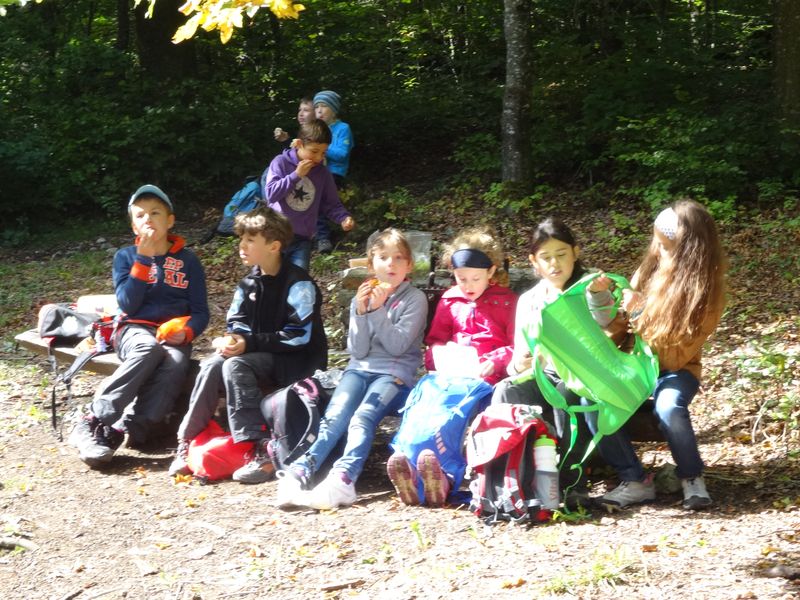 Puis, toute la troupe s'est mise en route pour redécouvrir la forêt d'Evilard et ses nombreux chemins, en s'arrêtant régulièrement pour déguster les spécialités préparées.