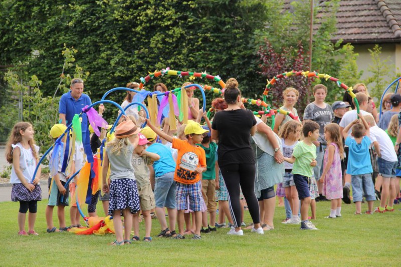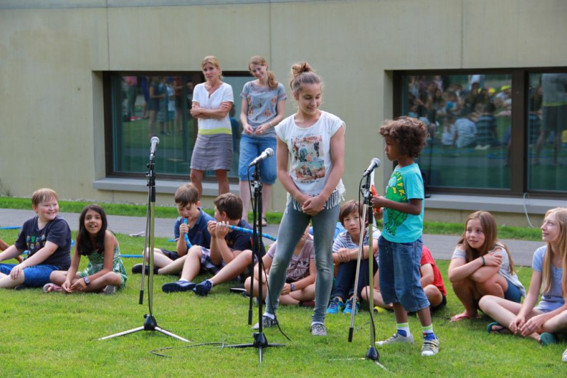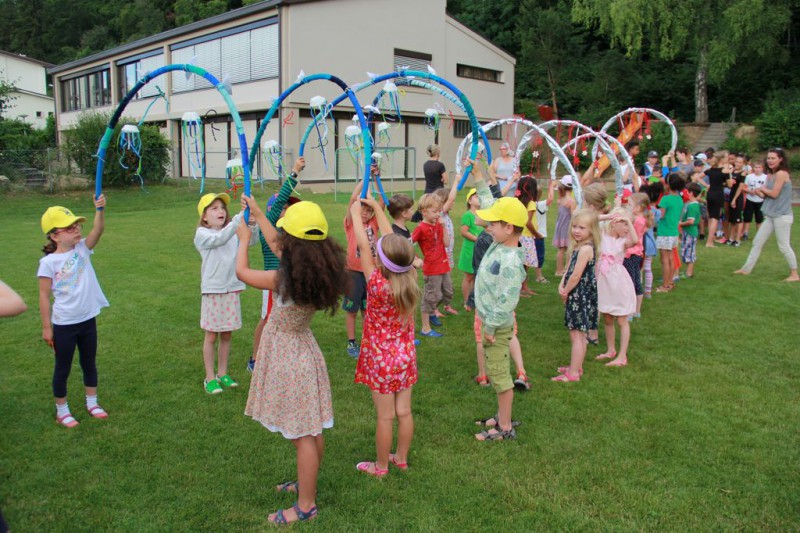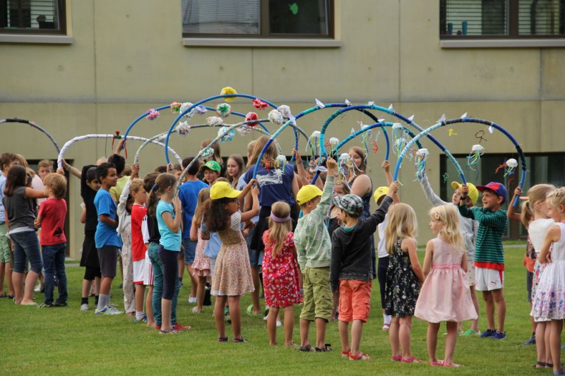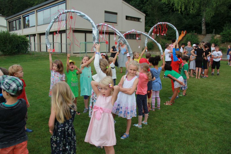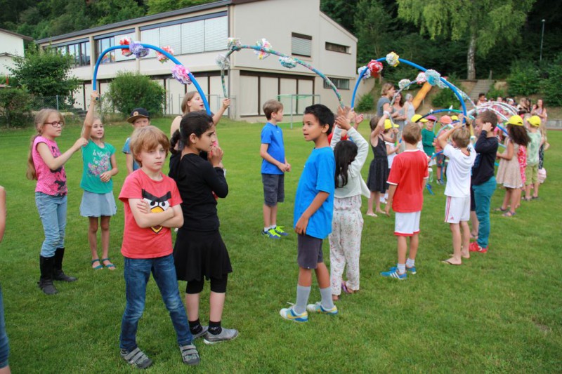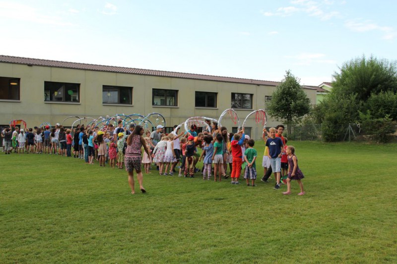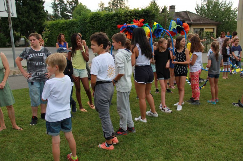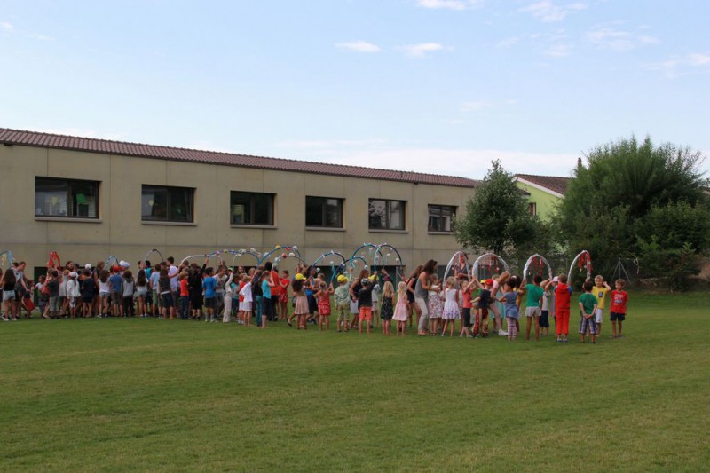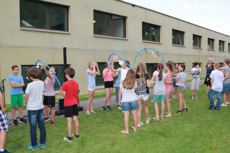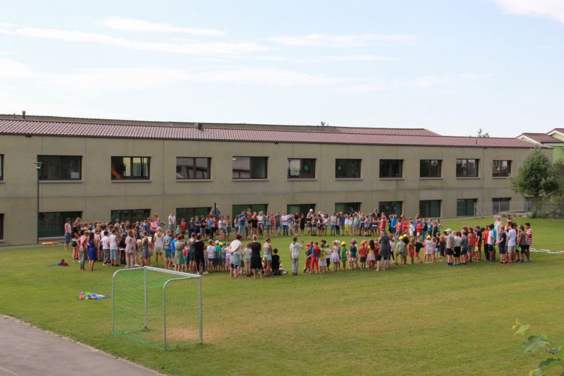 Comme au début de l'année pour accueillir les nouveaux élèves de 3H, nous nous sommes réunis pour souhaiter "Bonne chance" aux 8H qui quittent notre écolepour aller à Bienne.