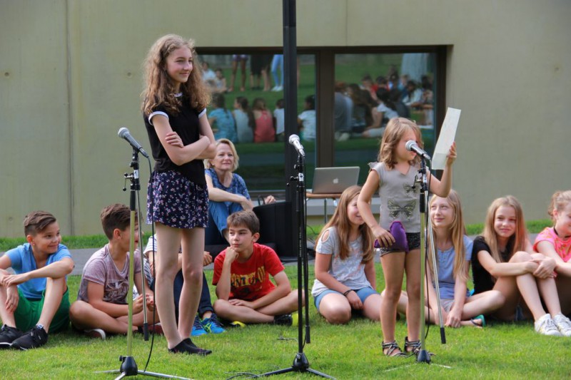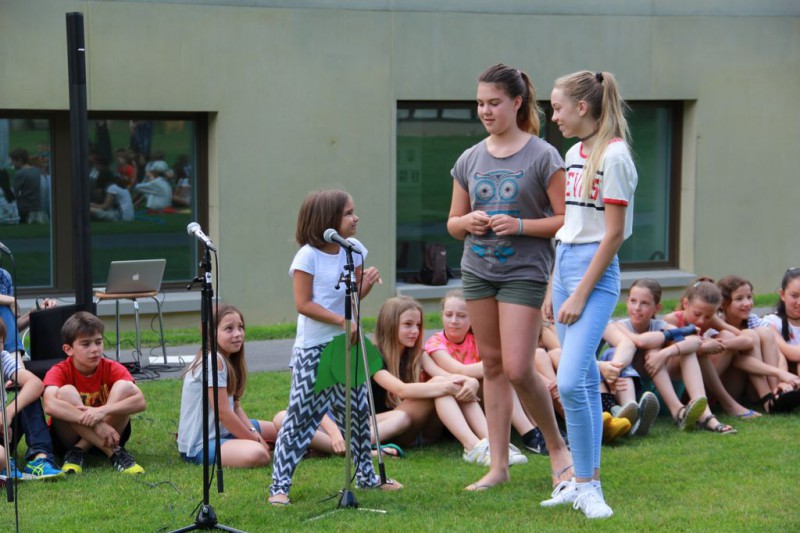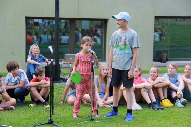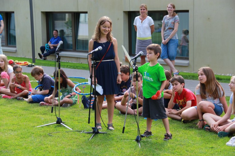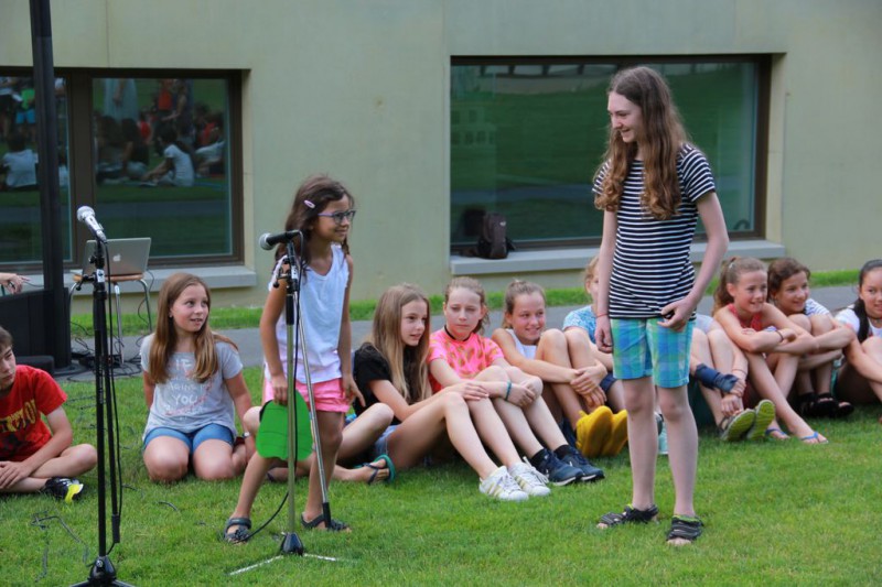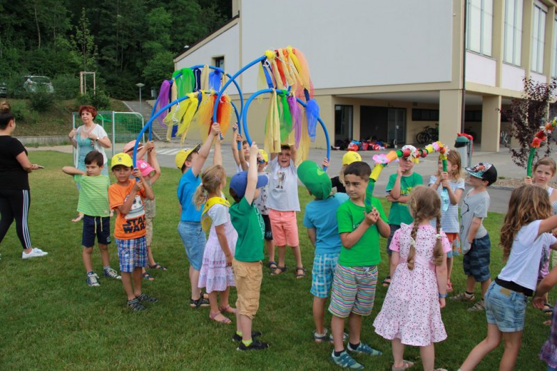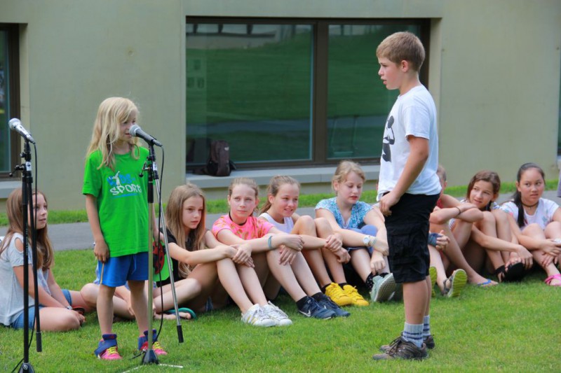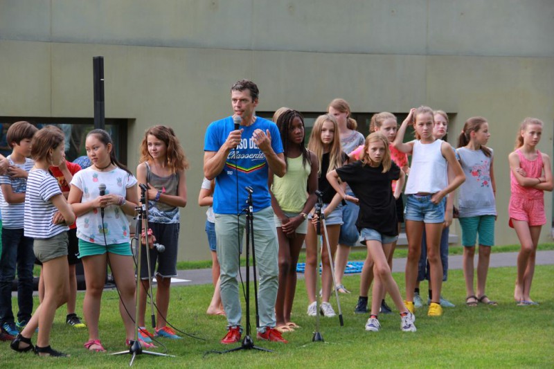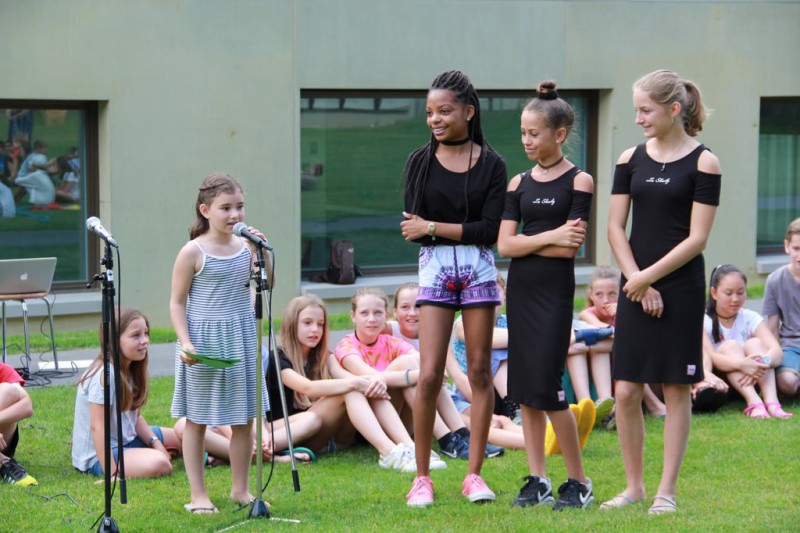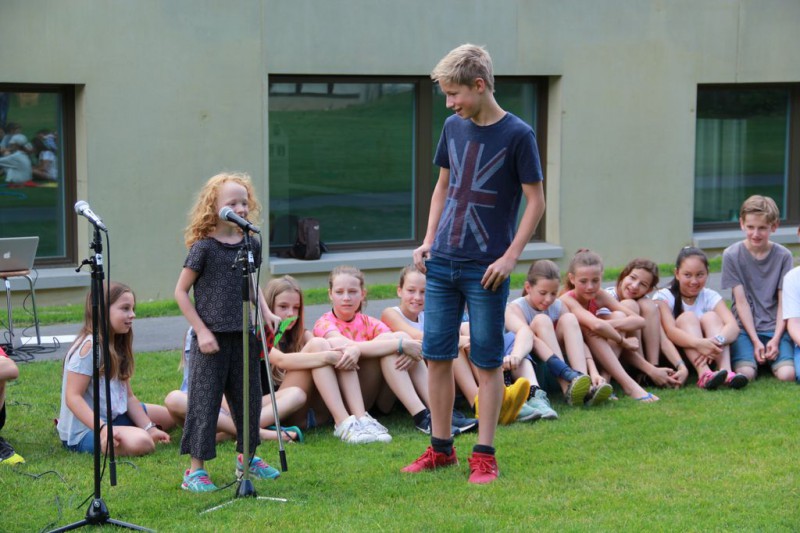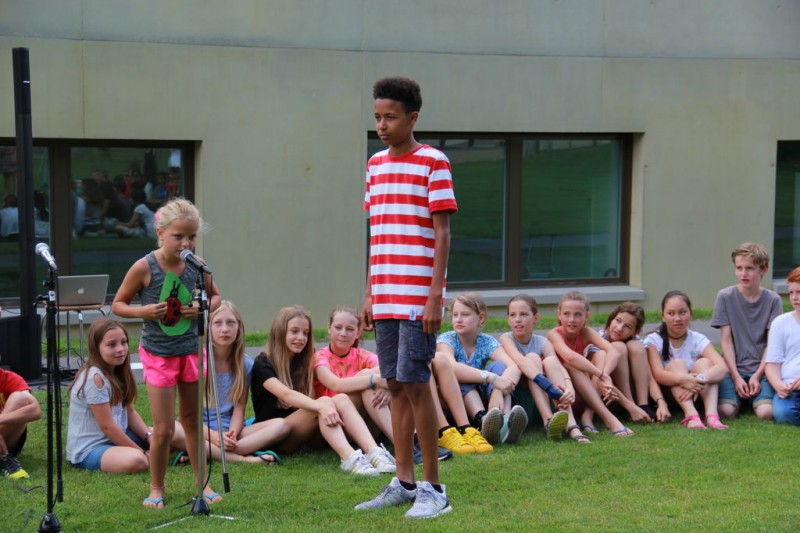 Comme au début de l'année pour accueillir les nouveaux élèves de 3H, nous nous sommes réunis pour souhaiter "Bonne chance" aux 8H qui quittent notre écolepour aller à Bienne.