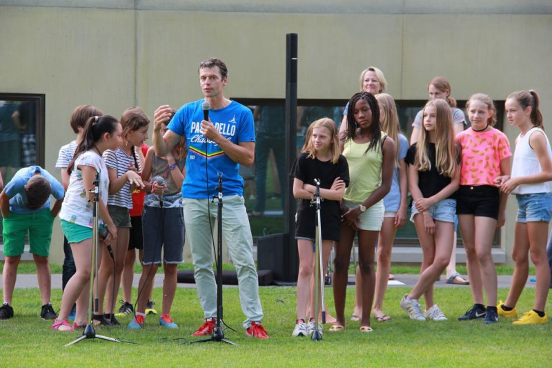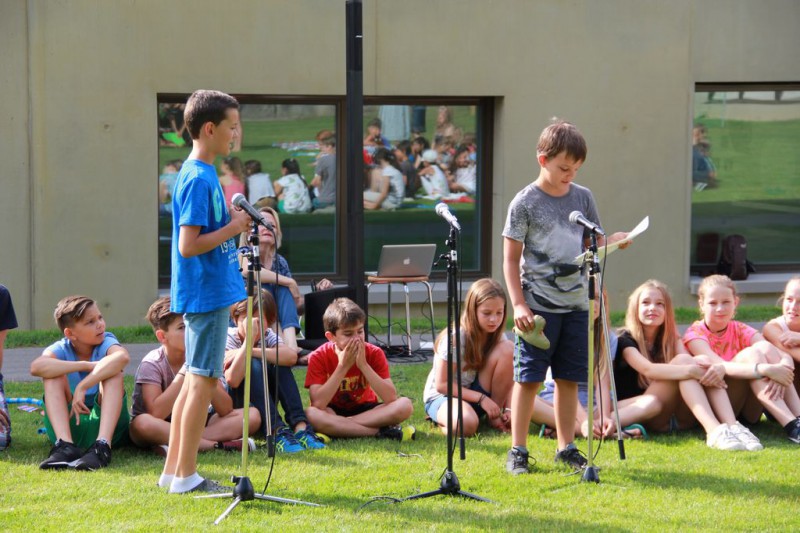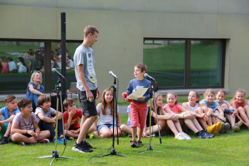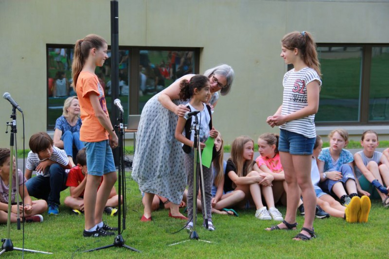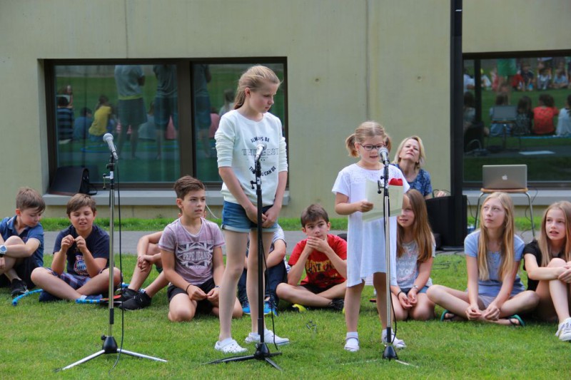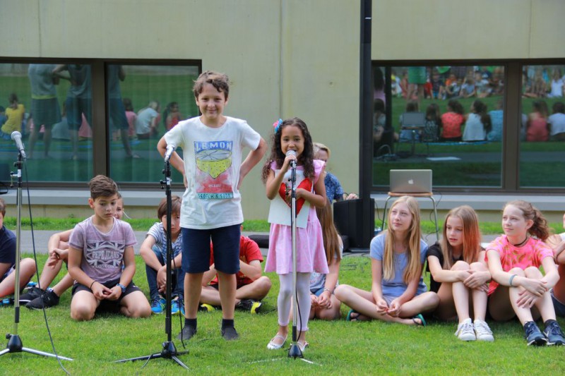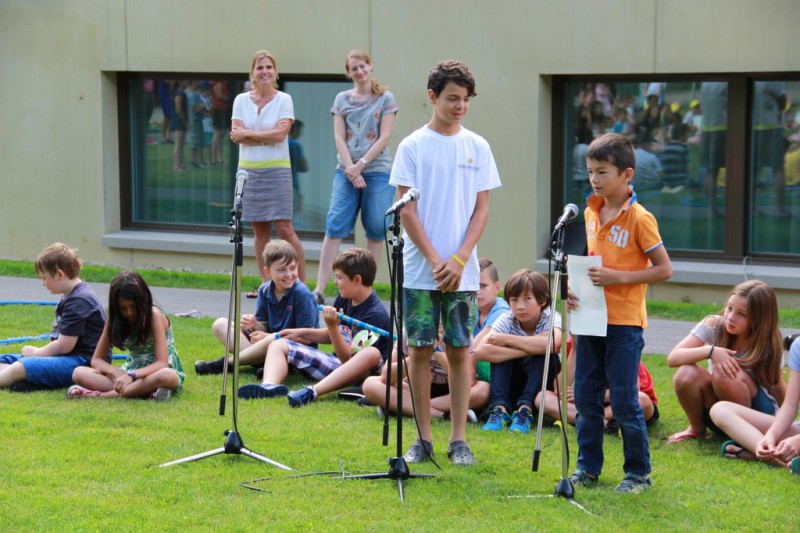 Après une haie d'honneur sous l'hymne "We are the Champions", les 8H leur ont écouté leurs filleuls leur souhaiter -avec émotion- une bonne suite de scolarité et ont tous reçu un petit cadeau souvenir, confectionné avec amour. Un dernier chant de tous les élèves et un petit discours du directeur ont achevé cette cérémonie d'au revoir.
