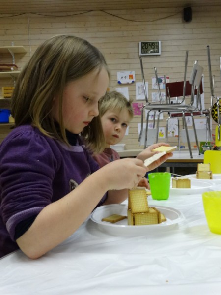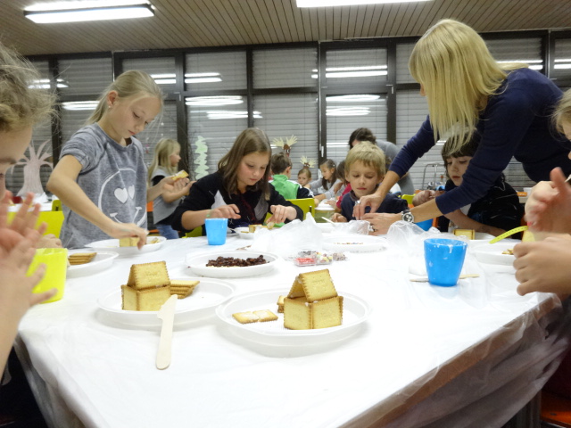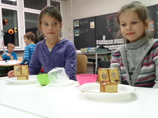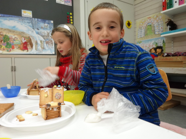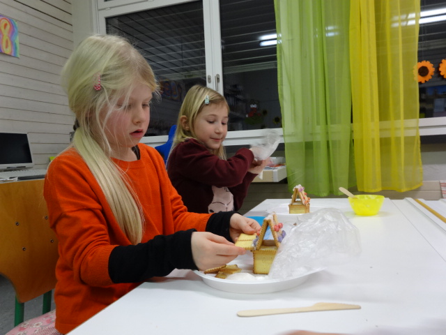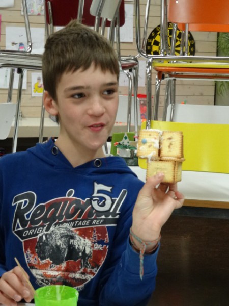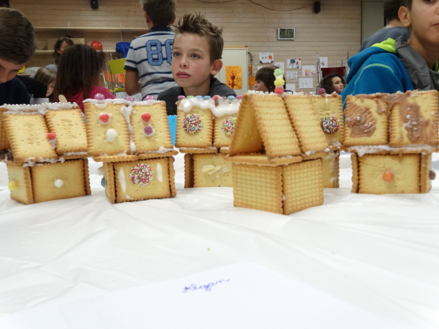 Entre créativité et gourmandise, un dernier moment attendait les élèves : la construction d'une maison en biscuits, tout droit sortie d'un conte de fées !