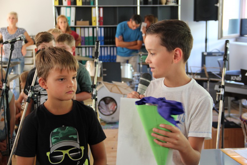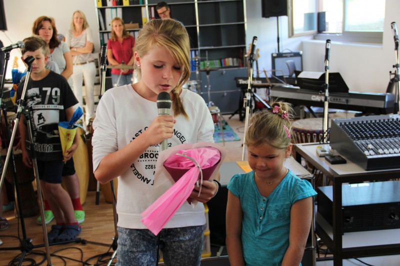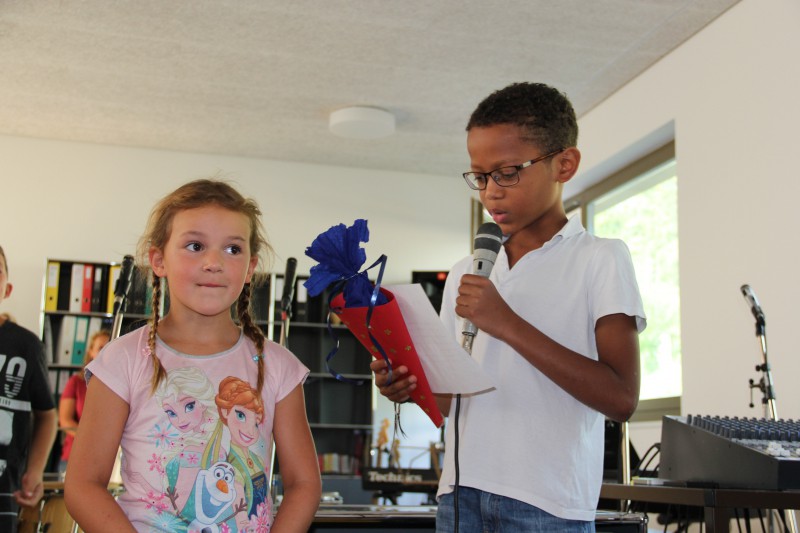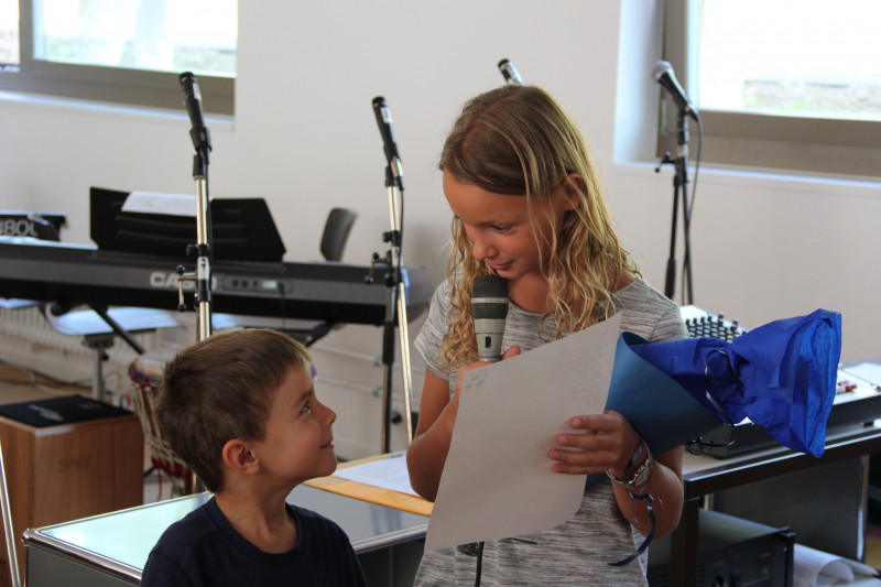 Pour les accueillir et commencer la nouvelle année, tous les élèves étaient réunis dans la salle polyvalente. Les nouveaux directeurs, Stefan Wyss et Chantal Gaschen ont tout d'abord dit quelques mots, puis les élèves ont souhaité la bienvenue aux 3H avec un chant bilingue.