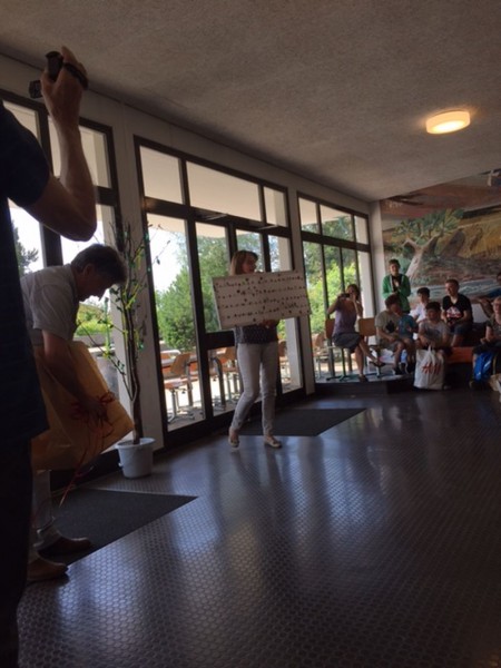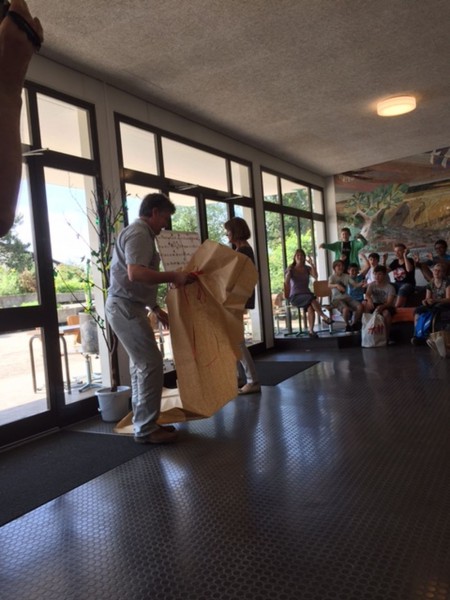 Pour l'occasion, les élèves et les collègues lui ont préparé quelques surprises. Des poésies et des pièces de théâtre qu'elle enseignait aux petits, un chant bilingue, Krabadu et ses amis en tableau pour avoir un souvenir de tout le monde, un film d'interviews et d'autres surprises ont marqué cet événement.