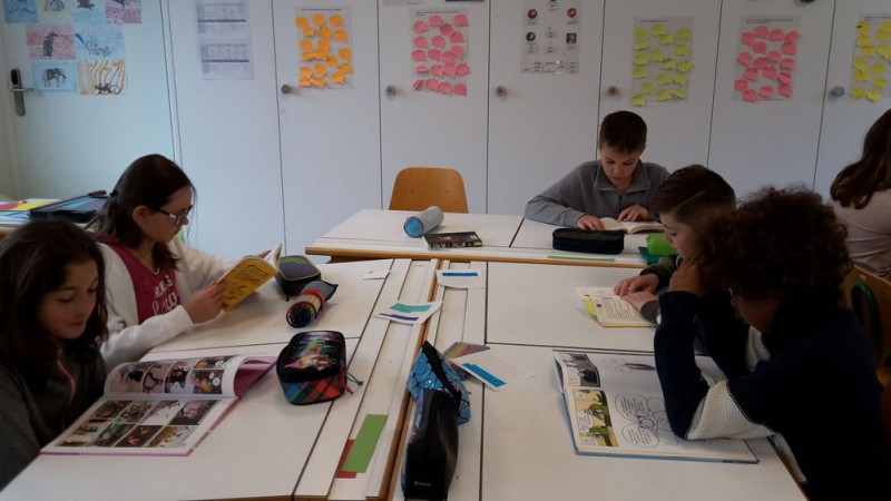 Lectures cadeaux d'élève à élève ou de la part d'intervenants externes, visite de la bibliothèque de la ville de Bienne, fabrication de papier recyclé ou découverte de différents types de textes et bien d'autres choses encore ont été organisées.