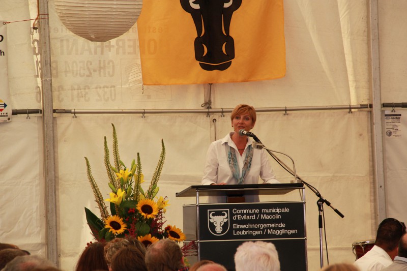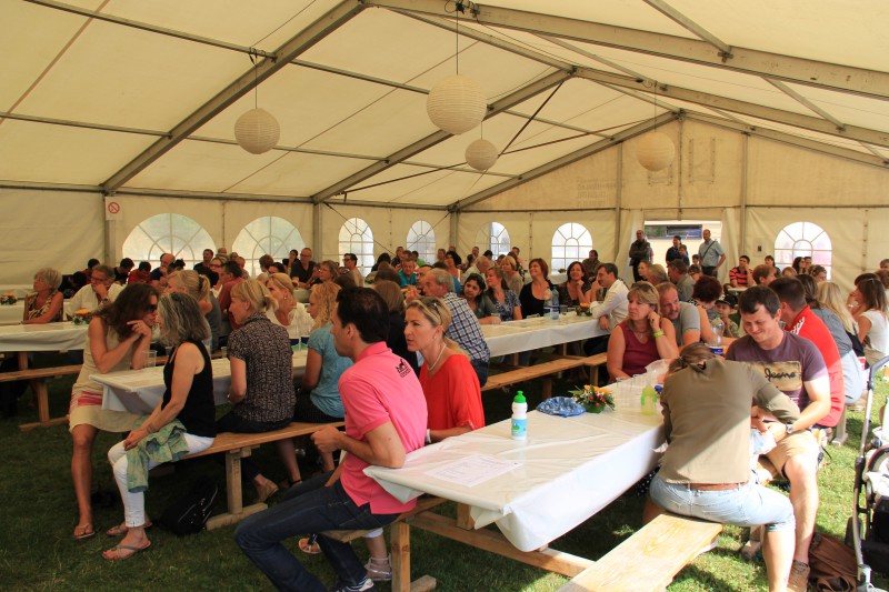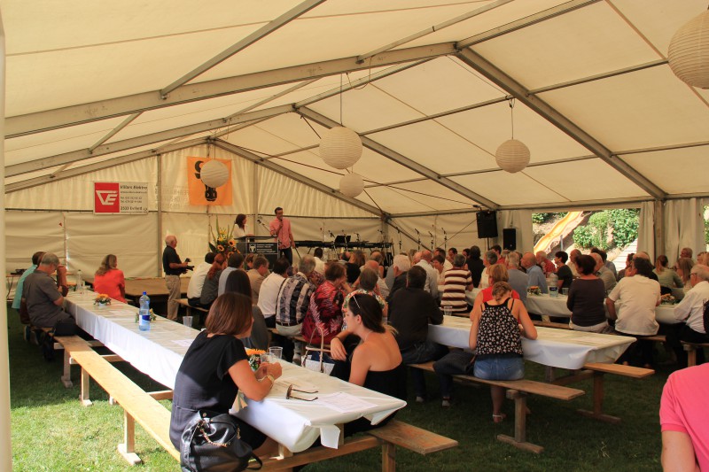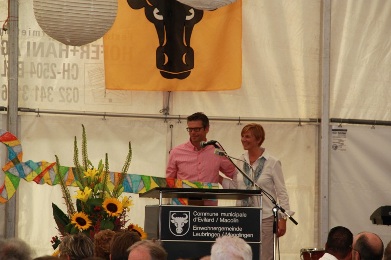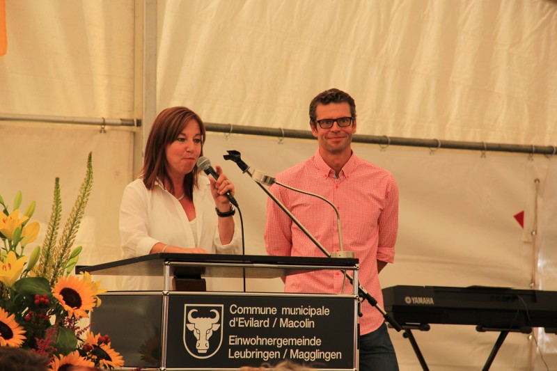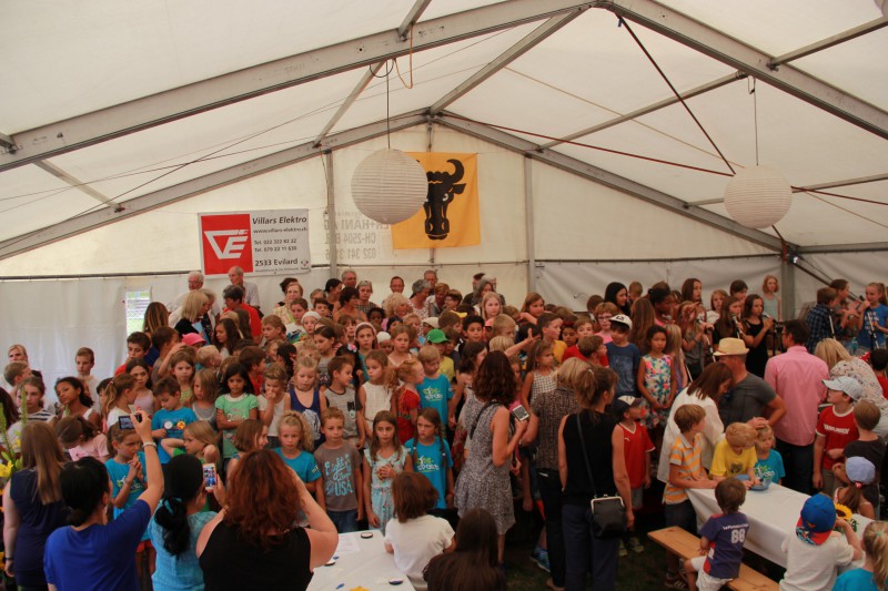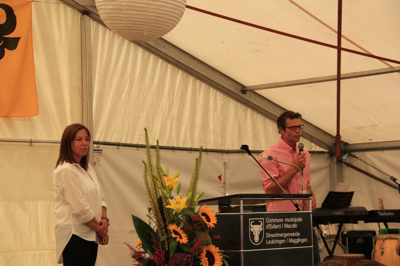 C'est sous la tente spécialement installée pour l'occasion, que la journée a commencé. Après une brève introduction du directeur Stefan Wyss e de la vice-directrice Chantal Gaschen, la mairesse Madeleine Deckert et la conseillère municipale Claire-Lise Kirchof ont pris la parole pour nous conter l'aventure de l'agrandissement de l'école.