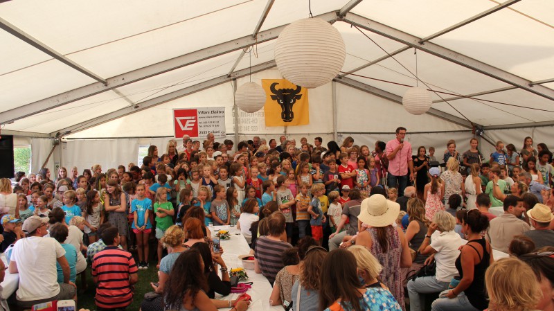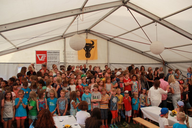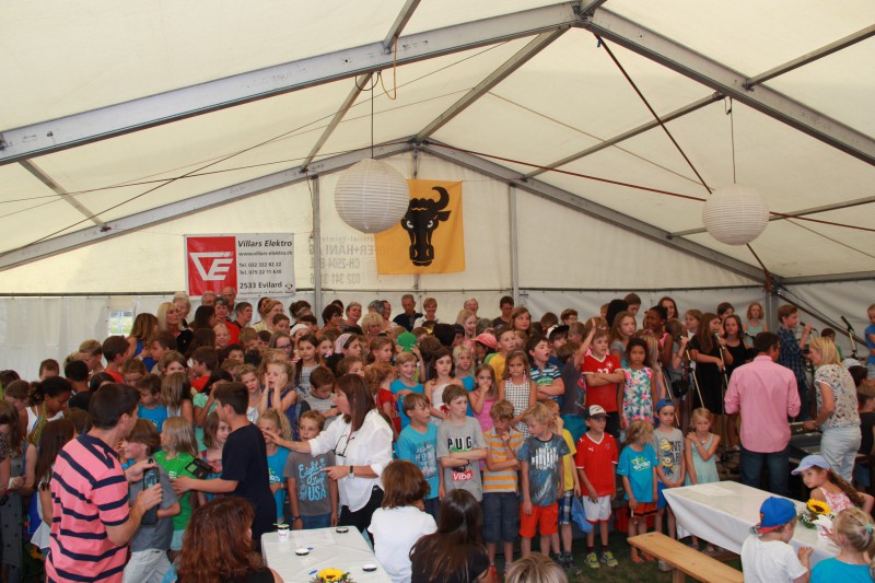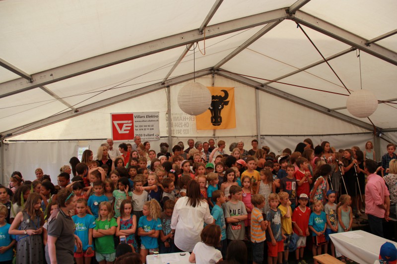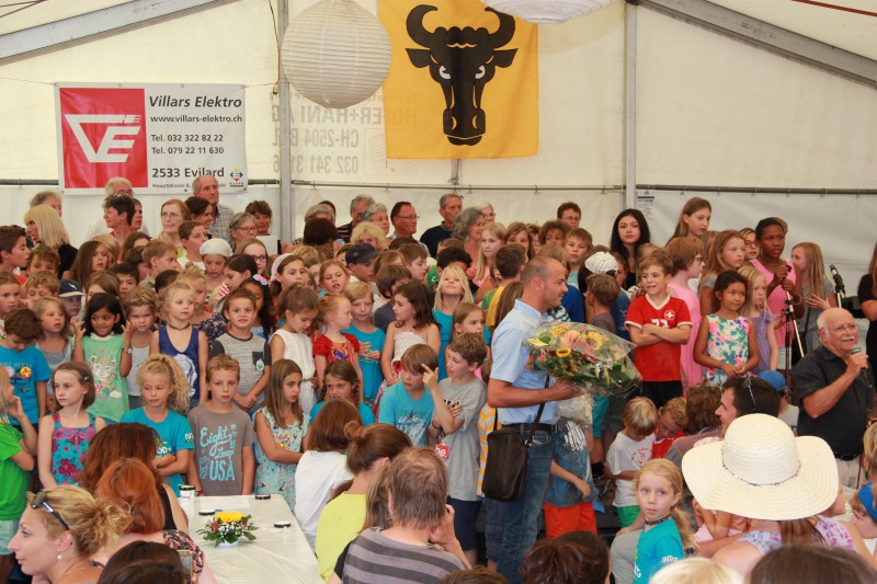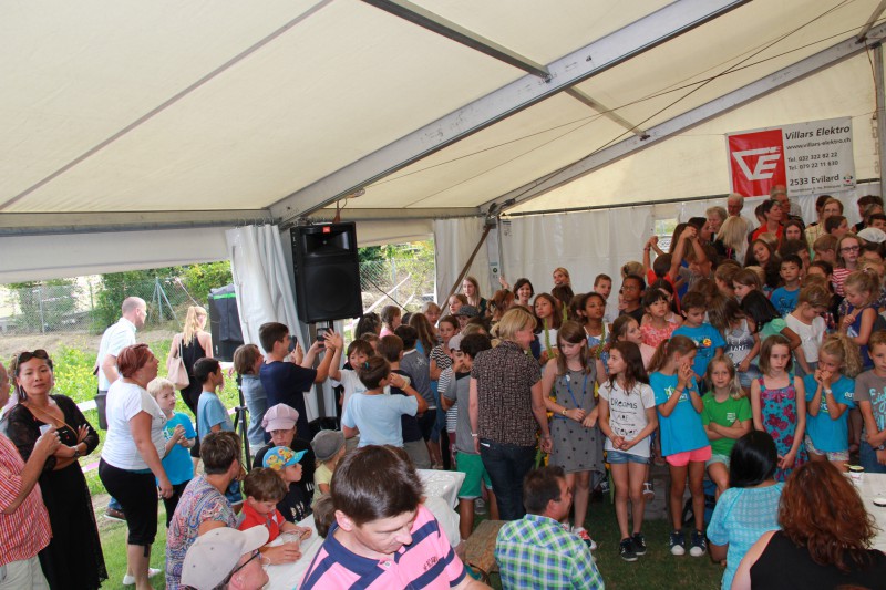 Un moment de chant, interprété par les élèves et le choeur mixte d'Evilard a clos la partie officielle, avant que le DJ Cédric Voisard prenne le relais pour assurer l'ambiance de la soirée.